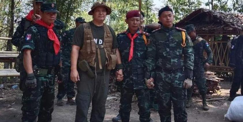 ပုံစာ - ဥကရစ်ထတိုင်ပွဲတွင်စစ်ကာင်စီကိုတိုက်ခိုက်နေသည့် တော်လှန်ရေးအဖွဲ့များကိုတွေ့ရစဥ်