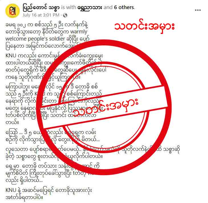 ဒါ့အပြင် အရင်က CDM လုပ်လာတဲ့ စစ်ကောင်စီတပ်သားတွေကိုလည်း KNU က သတ်ခဲ့တယ်ဆိုပြီး တော့လည်း ရေးထားတာကို တွေ့ရပါတယ်။