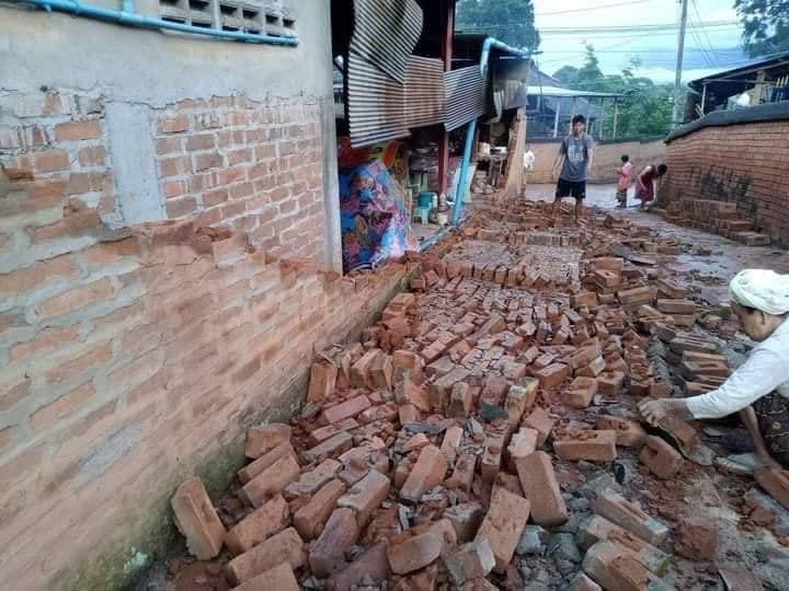 ကျိုင်းတုံ ငလျင်လှုပ်ခတ်မှုကြောင့် ပျက်စီးသွားသည့်နေအိမ်