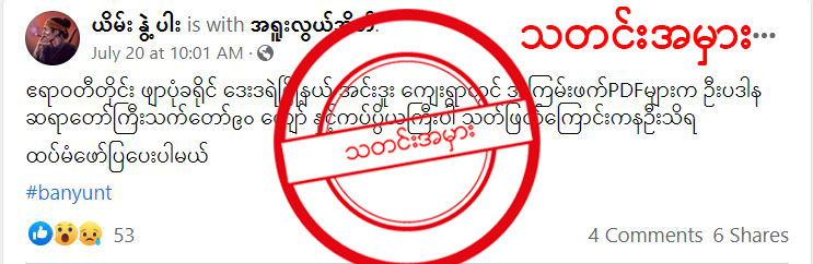 ဒါကြောင့် အခုလိုမျိုး နိုင်ငံရေး မတည်မငြိမ်ဖြစ်နေတဲ့ ကာလမှာ သတင်းအမှား ဖြန့်ဝေသူတွေဟာ ပုံစံအမျိုးမျိုး နဲ့ သတင်း အမှားတွေကို ဖန်တီးရေးသား ဖြန့်ဝေနေကြတဲ့အတွက် လူမှုကွန်ရက်တွေကနေ သတင်းတွေကို ဖတ် ပြီး/ကြည့်ပြီး ဖြန့်ဝေတော့မယ်၊ တဆင့်ပြန်ပြီး ပြောပြတော့မယ်ဆိုရင် အမှန်တကယ် ယုံကြည်စိတ်ချရတဲ့ သတင်းဌာနတွေနဲ့ သေချာ တိုက်စစ်ပြီးမှ ထပ်ဆင့်ဖြန့်ဝေ ဖို့လိုပါတယ်။