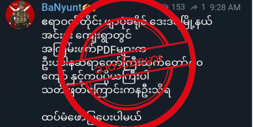 ဒါကြောင့် အချက်အလက်တွေကို တိုက်ကြည့်လိုက်တဲ့အခါမှာတော့ အင်းဒူးကျေးရွာက ကျောင်းထိုင်ဆရာ တော်နဲ့ ကပ္ပိယတို့ကို PDF တွေက သတ်သွားတယ်ဆိုတဲ့ ရေးသားမှုဟာ PDF တွေကို ပြည်သူတွေ အထင်အမြင် မှားအောင်၊ မကူညီ၊ မထောက်ပံ့အောင် ဝါဒဖြန့်ဖို့အတွက် တမင်ရည်ရွယ်ပြီး ဖန်တီးရေးသားထားတဲ့ သတင်း အမှားဖြစ်တယ်ဆိုတာကို တွေ့ရပါတယ်။