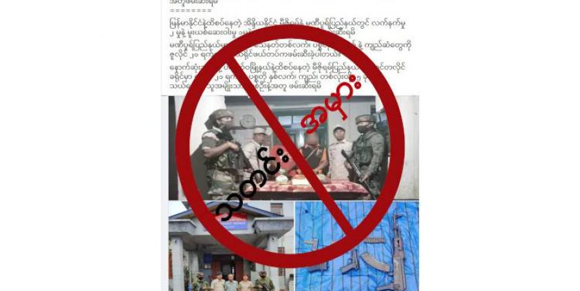 စစ်မင်း ဆိုတဲ့ Facebook Account ကနေပြီး “မြန်မာနိုင်ငံနဲ့ထိစပ်နေတဲ့ အိန္ဒိယနိုင်ငံ မီဇိုရမ်နဲ့ မဏိပူရ်ပြည်နယ်မှာ လက်နက်မှု ၁ မှုနဲ့ မူးယစ်ဆေးဝါးမှု ၁ မှုနဲ့အတူ တရာခံ PDF ၃ ဦးဖမ်းဆီးရမိ” လို့ရေးသားဖော်ပြထားပါတယ်။