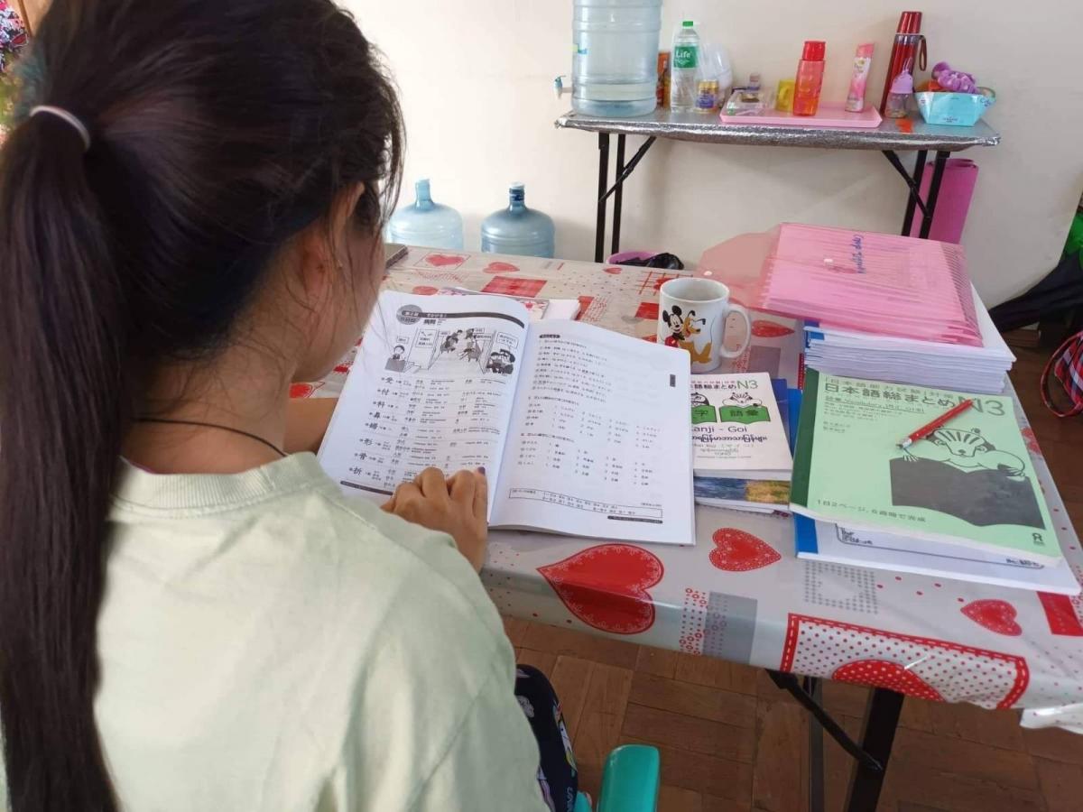 ပြည်ပထွက်အလုပ်လုပ်ဖို့ ဂျပန်စာလေ့လာသင်ယူနေတဲ့ အမျိုးသမီးတစ်ဦး။