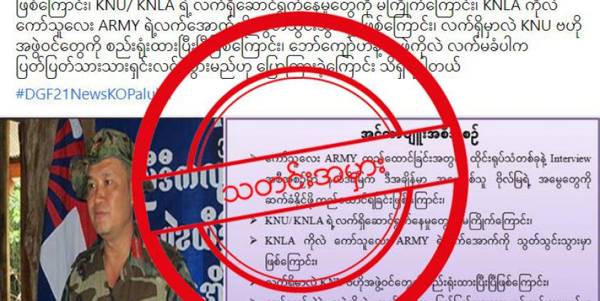 KNLA ကို ကော်သူးလေ တပ်မတော်ထဲ သွင်းဖို့ အစီအစဉ်ချထားတယ်ဆိုတဲ့ သတင်းမှားဖြန့်