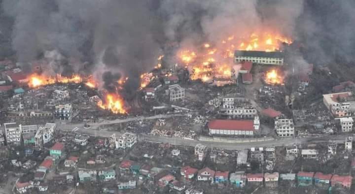 မီးလောင်မှုမှာ လူနေအိမ်များမကပဲ ဘာသာရေးအဆောက်အဦးများ၊ ရုံးများ၊ ကျောင်းများ၊ ဘုရားကျောင်းများလည်းအပါအဝင်ဖြစ်သလို မြို့နယ်ဆေးရုံဟာလည်း အခုအခါမှာတော့ ခြုံမြက်တွေနဲ့ပြည့်နှက်နေပါပြီ။ လူဦးရေသောင်းကဏန်းရှိတဲ့ မြို့ပေါ်ဒေသခံတွေကတော့ တစ်ဦးမှ မရှိကြတော့တာ ကြာပြီဖြစ်ပါတယ်။