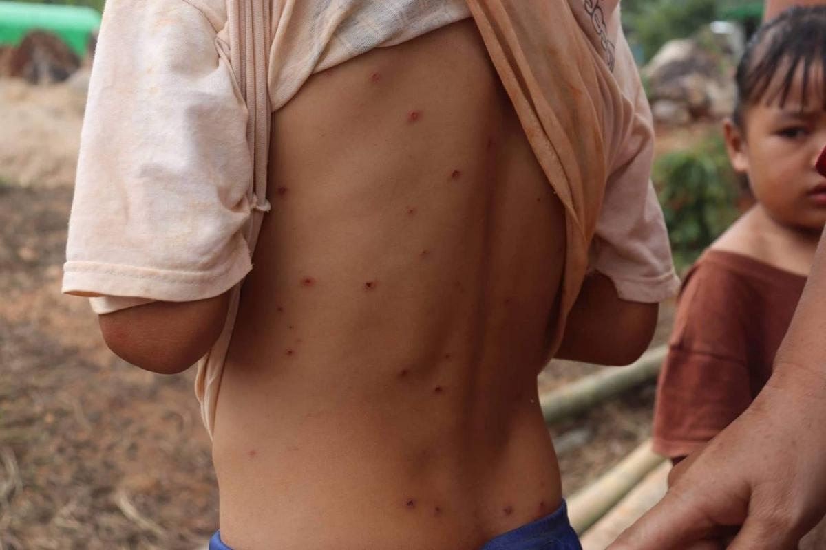 “Camp ထဲမှာရှိတဲ့ကလေးတွေက အယောက် ၆၀လောက်ရှိမယ်။ ကျောင်းတက်တာပေါ့။ တချို့က ကိုယ်ပူဖျားနာပြီးမှပဲ အဖုထွက်တယ်။ တချို့က အဖုထွက်တဲ့အချိန်မှာ သုံးလေးရက်လောက်ဆက်တိုက် အဖျားမကျဘဲနဲ့ အဖုလည်းထွက်လိုက် ကိုယ်လည်းပူလိုက်ဖြစ်တယ်။ တစ်ယောက်ပြီးတစ်ယောက် တခါတလေဆို သုံးလေးယောက်ပြိုင်ထွက်တယ်။ တခါတလေဆို တစ်ယောက် နှစ်ယောက်ထွက်တာလည်းရှိတယ်။ အခု ပေါက်တာကတော့ ၂၀ကျော် ၃၀လောက်တော့ရှိတယ်။”လို့ စစ်ရှောင်အမျိုးသမီးတစ်ဦးက ပြောပါတယ်။