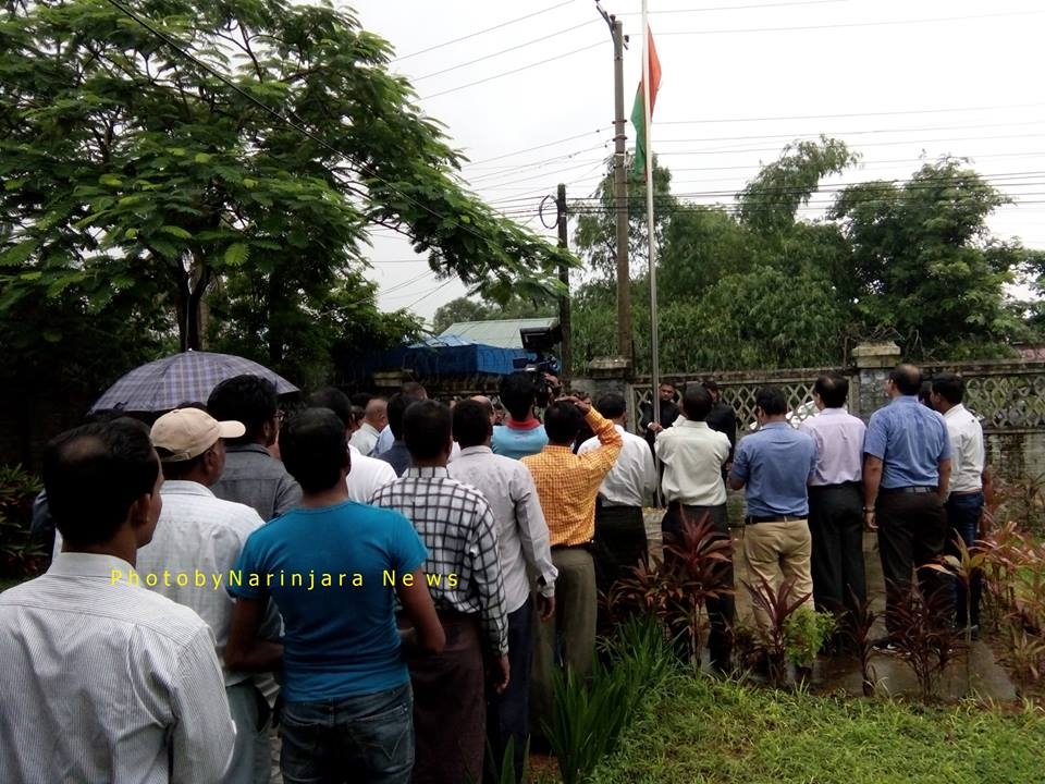 နံနက် ၉ နာရီတိတိ၌ အလံတင်အခမ်းအနားကို အိန္ဒိယနိုင်ငံတော်သီချင်းကို သီဆို၍ ပြုလုပ်ခဲ့ပြီး မြန်မာနိုင်ငံဆိုင်ရာ အိန္ဒိယကောင်စစ်ဝန်အရာရှိ ဒေါက်တာ ကူးမာပရာဗင်နှင့် ဘင်္ဂလားဒေ့ရှ် ကောင်စစ်ဝန်တို့က အသီးသီး အမှာစကားပြောကြားခဲ့ကြသည်။