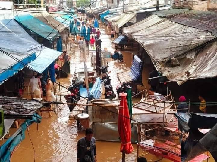 မြန်မာ – ထိုင်း နယ်စပ်ဖြစ်တဲ့ သျှမ်းပြည်အရှေ့ပိုင်း တာချီလိတ်မြို့တွင် တောင်ပေါ်ရေကျချောင်းများကြောင့် အဆမတန်ရေကြီးရေလျှံမှုဖြစ်ပွားပြီး တမြို့လုံးနီးပါး ပျက်စီးဆုံးရှုံးမှုများကြောင်း စုံစမ်းသိရှိရသည်။