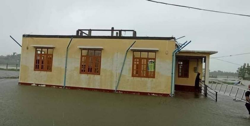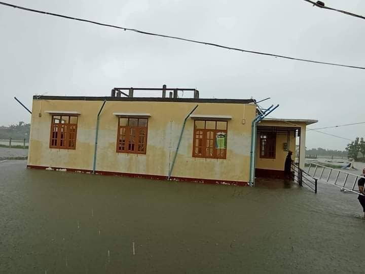 "အလှပ်မှာ ၂ နာရီခွဲလောက်က မိုးရွာတဲ့အချိန်မှာ လေဆင်နှာမောင်းပါ တိုက်လိုက်တာ။ နေအိမ် အမိုးလန်ကျပျက်စီးတယ်။ ဆေးပေးဆေးခန်းကလည်း ရေတွေဝိုင်းထားပြီး အမိုးလန်သွားတာပေါ့။ လူထိခိုက် ဒဏ်ရာရတာတော့ မရှိဘူး " ဟု ၎င်းက ပြောသည်။