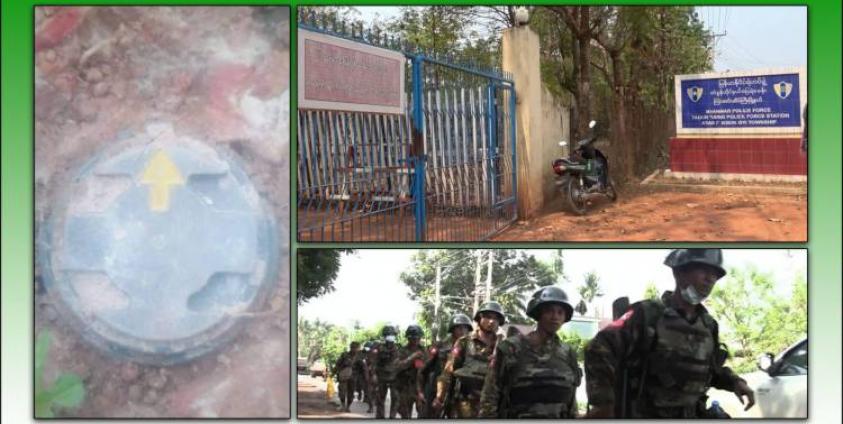 တံခွန်တိုင်ရွာ အမှတ်(၃) မူလတန်းကျောင်းဝင်းအတွင်း ထွက်ပေါက်ထောင့်စုနေရာတွင် စစ်ကောင်စီတပ်မှ မိုင်းတစ်လုံး ထောင်ထားသည့်အပြင် ခလယ်တံခွန်တိုင် အထက်တန်းကျောင်းဝင်းအတွင်းရှိ ကျောင်းခန်းမဆောင်အရှေ့နှင့် နှစ်ထပ်ကျောင်းကြီး အရှေ့ဘက် ကျောင်းအလံတိုင်အနီးတွင်လည်း အမိုးအကာဖြင့် ဖုံးအုပ်ထားကာ အမြှောက်လက်နက်ပုံစံ တူဖြင့် ကျေးရွာအတွင်းဘက်သို့မူပြီး ခြိမ်းခြောက်တပ်ဆင်ထောင်ထားသည့်အတွက် စိုးရိမ်ကြောက်လန့်နေကြရသည်ဟု ရွာသားများက ပြောသည်။