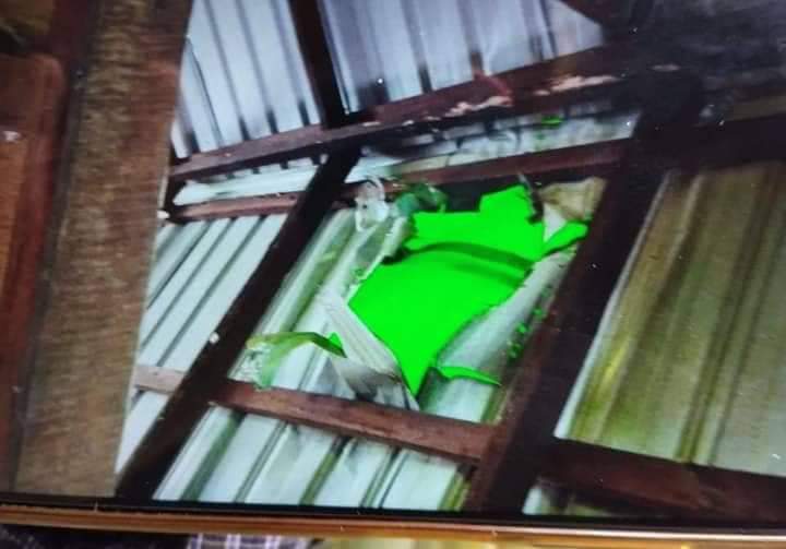 လက်နက်ကြီးကျရောက်မှုကြောင့် ဝကုန်းကျေးရွာမှ နေအိမ်နှစ်လုံး ထိခိုက်ပျက်စီးခဲ့စဉ်။ ဓာတ်ပုံ - CJ