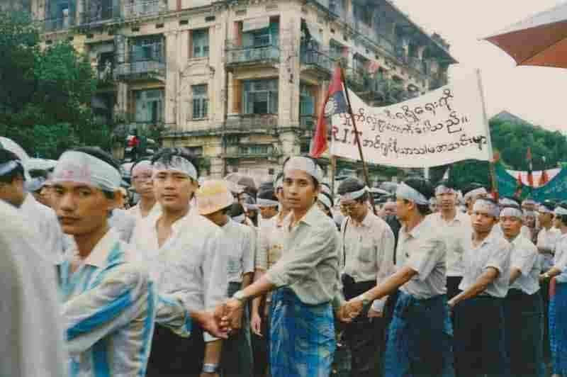 ရှစ်လေးလုံး လူထုအရေးတော်ပုံတွင် ပါဝင်ဆန္ဒပြနေသည့် ပြည်သူများ