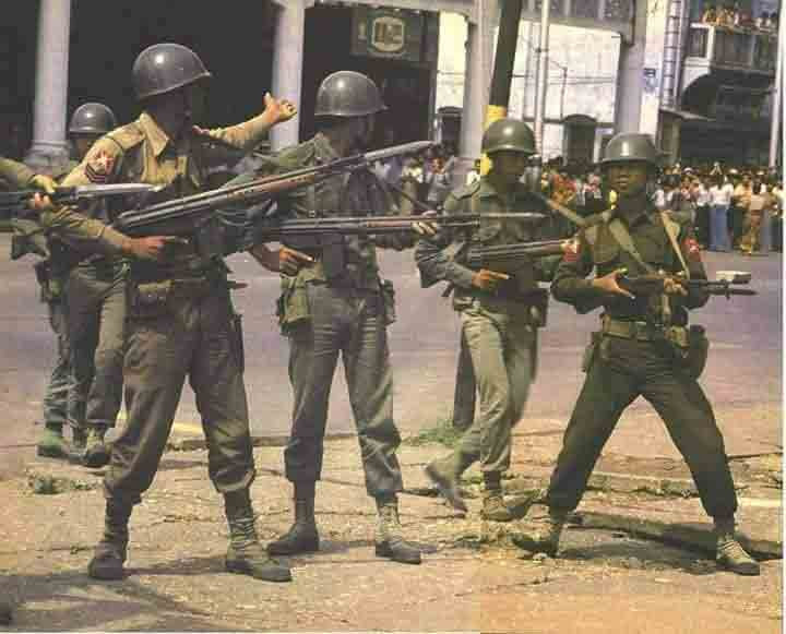 ရှစ်လေးလုံး လူထုအရေးတော်ပုံကြီးတွင် ဆန္ဒပြနေသူများကို တားဆီးရန် ပြင်ဆင်နေသည့် စစ်သားများ