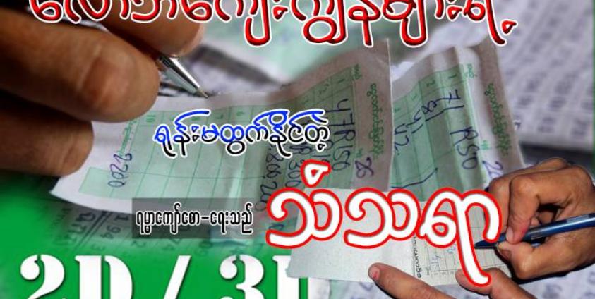 လူတွေဟာ ဝင်ငွေနဲ့ထွက်ငွေ မမျှတတော့တာကြောင့် အရင်းနည်းနည်းရင်းပြီး အမြတ်များများရမယ့်အရာကို လုပ်ဆောင်လာနေကြပါတယ်။ အဲဒါကတော့ လောင်းကစားပါပဲ။ လောင်းကစားဟာ လူတွေကို မျှော်လင့်ချက်ပေးတယ်၊ ငွေရလွယ်တဲ့ အလုပ်တစ်ခုဖြစ်ပါတယ်။ လက်ရှိ ကျနော်တို့ပတ်ဝန်းကျင်မှာ အများဆုံးမြင်တွေ့နေရတာကတော့ ၁ လုံးလို့ခေါ်တဲ့ ဘောလုံးပွဲလောင်းတာ၊ နှစ်လုံးထီလောင်းတာ၊ သုံးလုံးထီလောင်းကစား လုပ်နေကြတာတွေပါပဲ။
