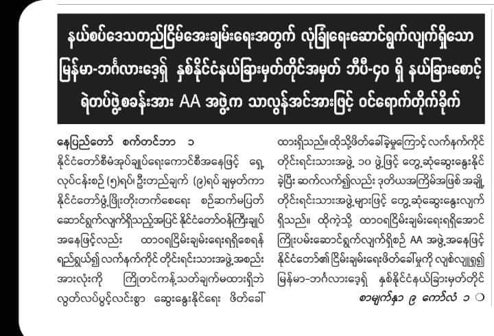 ရက္ခိုင့်တပ်တော် (AA) တိုက်ခိုက်သိမ်းပိုက်သွားသည့် မြန်မာ-ဘင်္ဂလားဒေ့ရှ် နှစ်နိုင်ငံနယ်စပ်ရှိ တပ်စခန်းအား ပြန်လည်သိမ်းပိုက်ရယူနိုင်ရေးအတွက် လိုအပ်သည်များဆောင်ရွက်နေသည်ဟု စစ်ကောင်စီက ထုတ်ဖော်ပြောဆိုသည်။