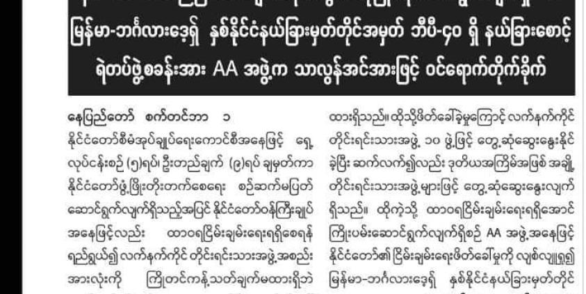 နှစ်နိုင်ငံနယ်ခြားမှတ်တိုင် အမှတ် ဘီပီ-၄ဝ ရှိ အင်အားအနည်းငယ်သာရှိသော နယ်ခြားစောင့် ရဲတပ်ဖွဲ့စခန်းအား သြဂုတ်လ ၃၁ ရက် နံနက်ပိုင်းတွင် AA အဖွဲ့က သာလွန်အင်အားဖြင့် တိုက်ခိုက်ခဲ့မှုကြောင့် စခန်းအား လက်လွတ်ဆုံးရှုံးခဲ့ရကာ နယ်ခြားစောင့်ရဲတပ်ဖွဲ့ဝင်တချို့ ထိခိုက်ကျဆုံးခဲ့ရသည်ဟု ထုတ်ပြန်ချက်တွင် ထည့်သွင်းရေးသားထားသည်။