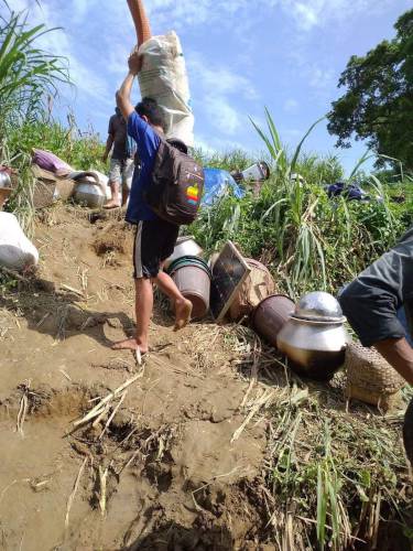 အိန္ဒိယနယ်စပ်သို့ ပလက်ဝမြို့နယ်၊မြိတ်ဝကျေးရွာသားများထွက်ပြေးနေကြစဉ်။ (ဓာတ်ပုံ- Khine Murn Chun Facebook)