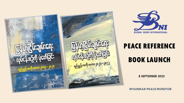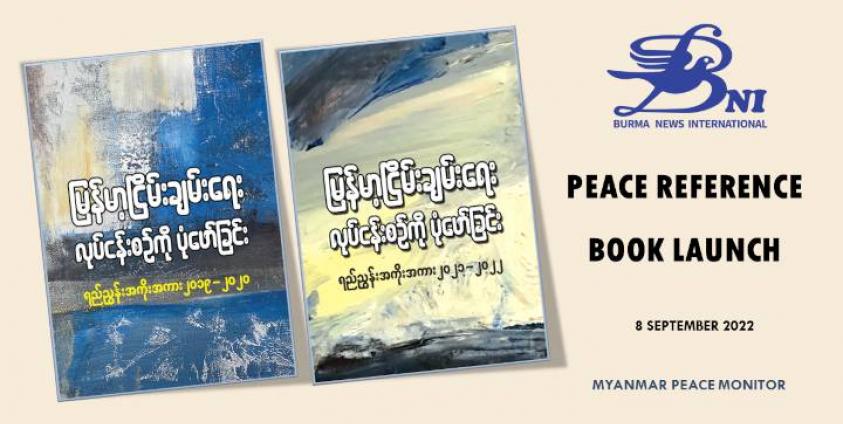 Burma News International (BNI) ၏ မြန်မာ့ငြိမ်းချမ်းရေးစောင့်ကြည့်ရေး (MPM) လုပ်ငန်းစဉ်မှ ၂၀၁၉-၂၀၂၀ ခုနှစ် နှင့် ၂၀၂၁-၂၀၂၂ ခုနှစ်များအတွက် ငြိမ်းချမ်းရေးလုပ်ငန်းစဉ်များကို စောင့်ကြည့်ရေးသားပြုစုထားသည့် အချက်အလက် များပါဝင်သော ကိုးကားစာအုပ်နှစ်အုပ် မိတ်ဆက်အစီအစဉ်ကို အွန်လိုင်းမှတဆင့် စက်တင်ဘာလ ၈ရက်နေ့ တွင် မိတ် ဆက်ထုတ်ပြန်လိုက်သည်။