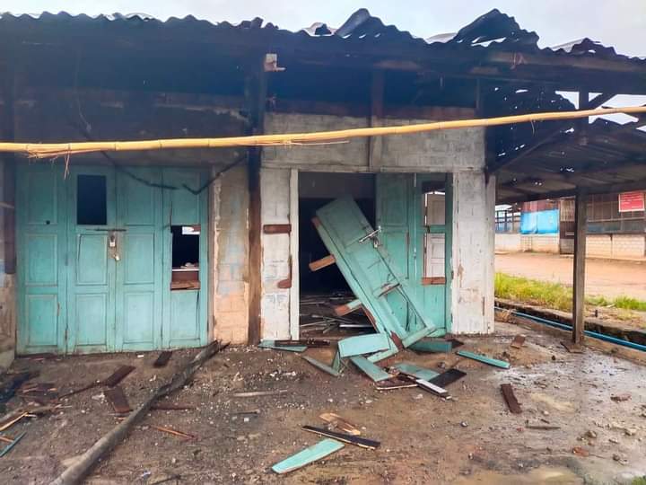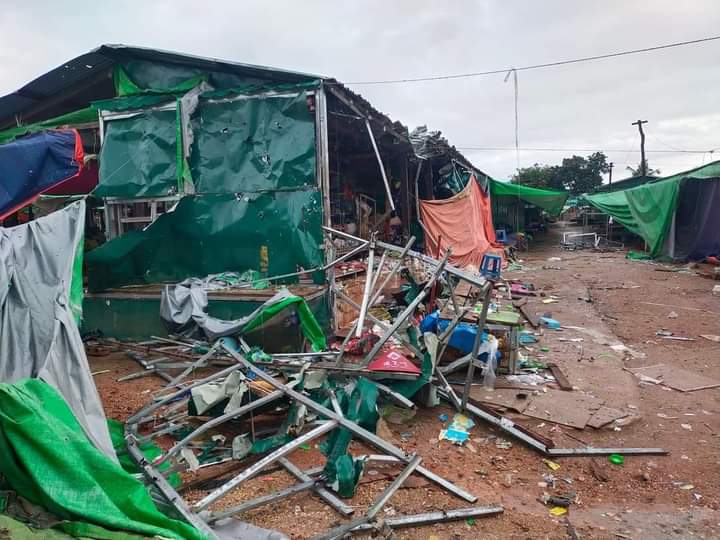 မိုးဗြဲတိုက်ပွဲအတွင်း ကလေးငယ်တစ်ဦးသေဆုံးခဲ့ပြီး နေအိမ်အချို့ ထိခိုက်ပျက်စီးခဲ့ပုံ။ (ဓာတ်ပုံ- CJ)