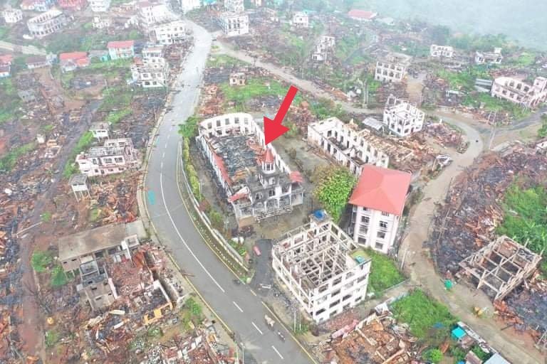 “မချမ်းသာသော်လည်း ပျော်ပါသည်”ဟူသော တောင်ပေါ်မြို့ကလေး၏ နှစ်ပေါင်း ၁၀၀ ကျော်သက်တမ်းရှိသည့် အသင်းတော်မှာ အာဏာသိမ်းစစ်တပ်က မီးရှို့သောကြောင့် မီးလောင်ပုံထဲအခွံမျှသာ ကျန်ရှိတော့သည်။