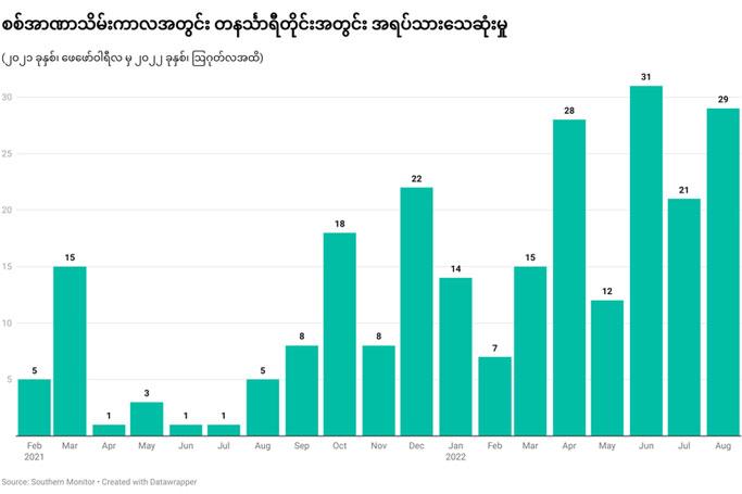 စစ်တပ်အာဏာသိမ်းပြီးနောက် တနင်္သာရီတိုင်း အတွင်း စစ်ကောင်စီတပ်ဖွဲ့က အပြစ်မဲ့ ပြည်သူများကို အကြမ်းဖက် ဖမ်းဆီး သတ်ဖြတ်မှုကြောင့် အရပ်သား သေဆုံးသူ ဦးရေသည် ၂၂၄ ဦးအထိ ရှိနေကြောင်း Southern Monitor က ပြုစုထားသော စာရင်းများအရ သိရ သည်။