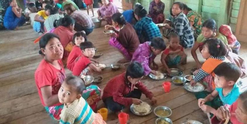 အဘောင်သား၊ ရုပ်ဝ၊ လယ်လှကျေးရွာအုပ်စုမှ စစ်ဘေးရှောင်များသည် မြို့ပေါ်ရှိ ဝိသုဓာရုံဘုန်းကြီးကျောင်း စစ်ဘေးရှောင်စခန်း၊ ဘောလုံးကွင်းစစ်ဘေးရှောင်စခန်း၊ စိုက်ပျိုးရေးစစ်ဘေးရှောင်စခန်း စသည်တို့တွင် ခိုလှုံနေကြပြီး စုစုပေါင်းလူဦးရေ ၃၀၀၀ ကျော်ရှိသည်။ အများစုမှာ ၂၀၁၈ ခုနှစ် တိုက်ပွဲဖြစ်ပွားစဉ်ကပင် လာရောက်ခိုလှုံနေကြခြင်းဖြစ်ပြီး လတ်တလောတိုက်ပွဲကြောင့် ထွက်ပြေးတိမ်းရှောင်လာသူများလည်း ပါဝင်သည်။