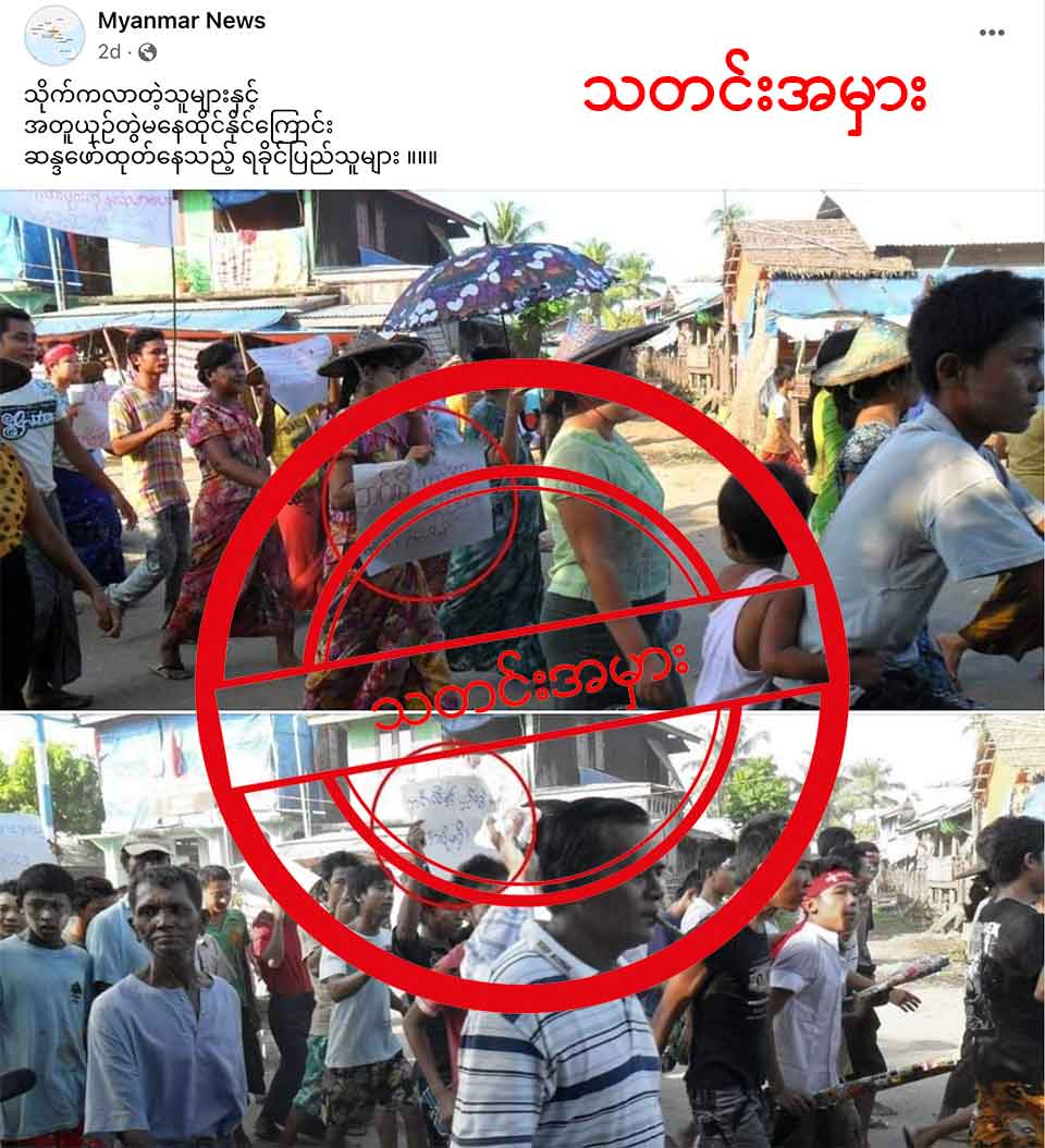 ဒါကြောင့် အချက်အလက်တွေကို တိုက်စစ်ကြည့်တဲ့အခါမှာ Myanmar News ဆိုတဲ့ Facebook စာ မျက်နှာက လက်ရှိ မြေပြင်မှာ တကယ်မဖြစ်ခဲ့တဲ့ သတင်းအချက်အလက်တွေနဲ့ ဓာတ်ပုံအဟောင်းကို အသုံးပြုကာ ရခိုင် ပြည် သူတွေနဲ့ ရက္ခိုင့်တပ်တော် ULA/AA ကို လည်းကောင်း၊ ရခိုင်ပြည်သူတွေနဲ့ ရို ဟင်ဂျာတွေကို လည်းကောင်း လူမျိုးရေး ပဋိပက္ခဖြစ်အောင် ရန်တိုက်ပေးတဲ့ ရည်ရွယ်ချက်နဲ့ ဝါဒဖြန့် ရေးသားထားတဲ့ သတင်းအမှားဖြစ်တယ် ဆိုတာကို တွေ့ရပါတယ်။
