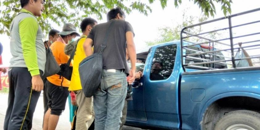 လမ်းမဘေး ပလပ်ဖောင်းပေါ်မှာ ဆေးလိပ်သောက်နေတဲ့သူက သောက်၊ ထိုင်းနိုင်ငံ အသင့်စား ခေါက်ဆွဲဗူး စားနေသူက စားပြီး၊ ငုတ်တုတ်ထိုင်တဲ့ သူကထိုင်၊ အိပ်နေတဲ့သူက အိပ်နေကြပြီး အဲ့လူတွေရဲ့ ဘေးမှာကတော့ အိတ်တွေကိုယ်စီ နဲ့ အလုပ်လာခေါ်မယ့် အလုပ်ရှင်တွေကို မျှော်နေကြတဲ့သူတွေပါ။