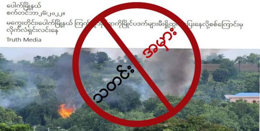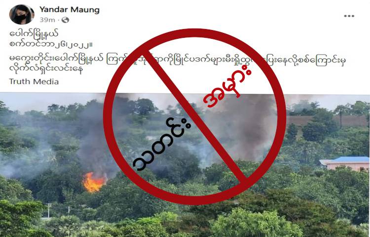 ဒီသတင်းအမှားကို Yandar Maung ဆိုတဲ့ Facebook အကောင့်ကနေ “မကွေးတိုင်း၊ ပေါက်မြို့နယ် ကြက်ဆူအိုင့်ရွာကို မြိုင်ပဒက်များ မီးရှို့ထွက်ပြေးနေလို့ စစ်ကြောင်းမှ လိုက်လံရှင်းလင်းနေ” ဆိုပြိးရေးသားဖော်ပြထားတာဖြစ်ပါတယ်။