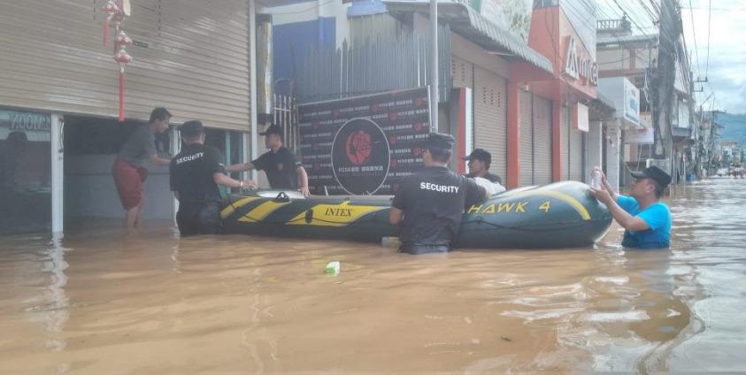 မိုးသဲသဲမဲမဲ ၂ နာရီလောက် ရွာချလိုက်တာနဲ့ ရေတွေကလည်း ဆိုင်ခန်းတွေထဲထိ တရိပ်ရိပ်တက်လာပြီး၊ ဆိုင်ထဲက ရောင်းတဲ့ပစ္စည်းသိမ်းချိန်တောင်မရခဲ့ပါ။