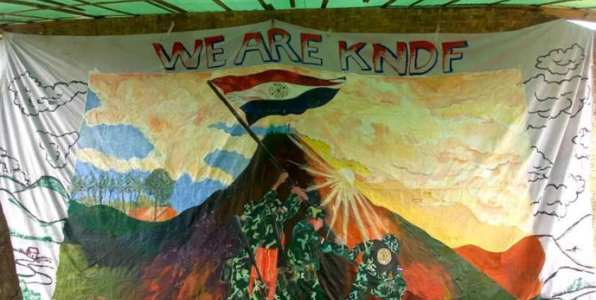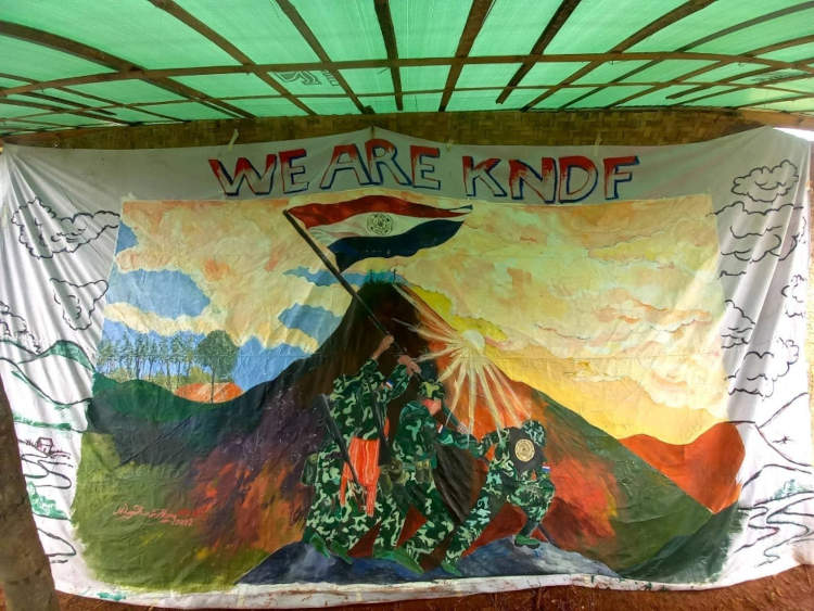 KNDF မူပိုင် သီချင်းတစ်ပုဒ်အတွက် KNDF logo တံဆိပ်ပါတဲ့ ဆေးပန်းချီပုံကို အချိန်ပေးရေးဆွဲထားပြီး အဲ့ဒီပန်းချီးကားရဲ့ အဓိပ္ပာယ်တစ်ခုချင်းကို သူက အခုလိုရှင်းပြထားပါတယ်။