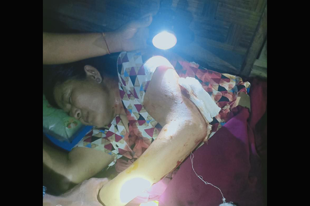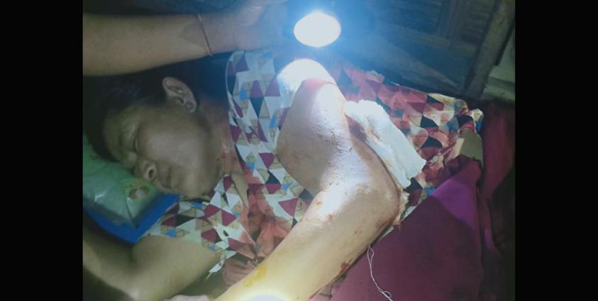 “မနေ့က ည ၈ နာရီခွဲလောက်မှာ င/စရိုင်းချောင်းတောင်ပေါ်မှာရှိတဲ့ ခမရ ၅၄၁ လက်အောက်ခံတပ်ရင်းက ပစ်တာပါ။ လက်နက်ကြီး ၅ လုံးပစ်တာမှာ နောက်ဆုံးအလုံး ရွာထဲ လာကျပြီး ထိသွားတာပါ။ သူက အိမ်မှာအိပ်နေတာ။ လက်နက်ကြီးက သူ့အိမ်ဘေးကခြံစည်ရိုးမှာကျပြီး သူ့ဆီကို လက်နက်ကြီးကျည်စတွေ ကျလာတာပါ။ အိပ်နေတာကြောင့် ဘယ်လက်မောင်းမှာ ပေါက်သွားတာ လက် ၃ ဆစ်လောက် နက်တယ်။ ပြီးရင် လည်ပင်းမှာ အပေါက်လေးပေါက်သွားတယ်”ဟု သူကပြောသည်။
