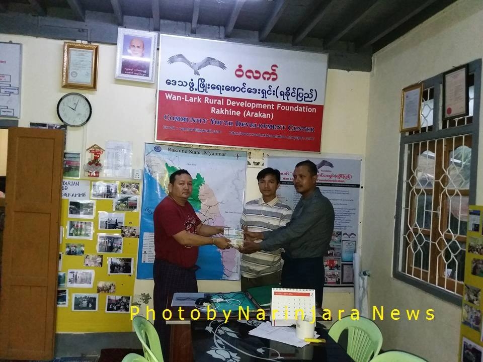 ရခိုင်ပြည်နယ် ဘူးသီးတောင်၊ မောင်တောနှင့် ရသေ့တောင်မြို့နယ်များမှ လတ်တလော ဒုက္ခရောက်နေကြရသည့် ရခိုင်တိုင်းရင်းသားများကို ကူညီရန်အတွက် စစ်တွေမြို့၊ ကျေးပင်ကြီးရပ်ကွက်၊ ရွှေသာလမ်းနေ စန်းမြတ်ရွှေဆိုင်နှင့် ရွှေမိုးရွှေဆိုင် ပိုင်ရှင် ဦးကျော်နေဦး (ခ) ဦးကျော်ကျော် မိသားစုမှ ငွေ ကျပ်သိန်း ၅၀ လှူဒါန်းလိုက်သည်။