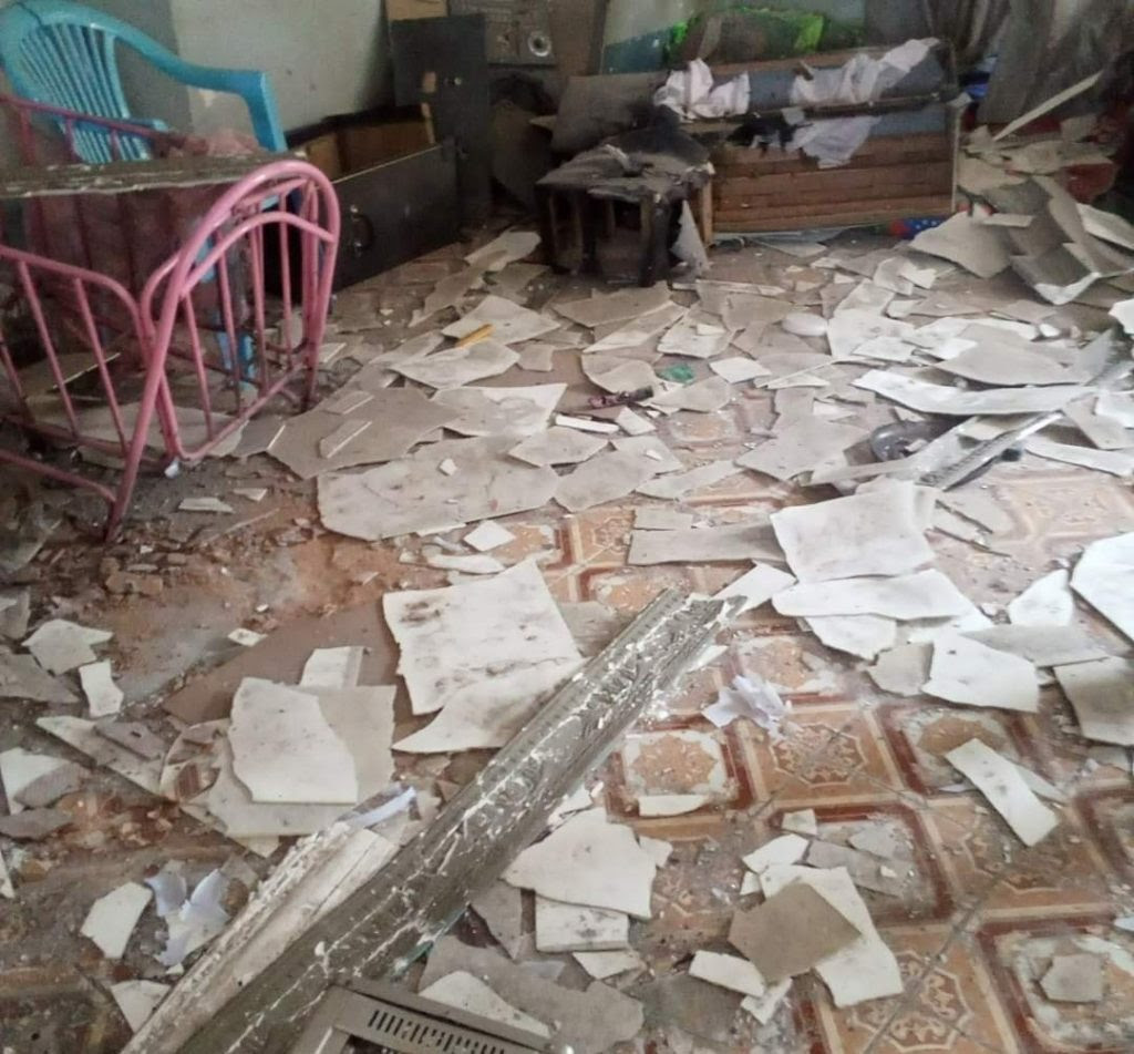 Some of the shells destroyed some houses in Mangton, but fortunately the residents had already fled after the armed groups opposing the military regime clashed with BA Infantry Battalion 130 in Myoma Ward around 10:30am on Tuesday.
