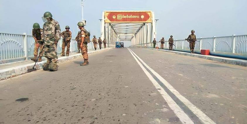 "လက်နက်ကြီးတွေကတော့ ပိတ်နေဆဲပါဘဲ။ မြို့ထဲမှာတော့ လက်နက်ကြီးတွေ စပိတ်ကတည်းက ဈေးဆိုင်တွေအကုန်လည်း သိမ်းထားကြပါပြီ။ နေ့လည် ၁ နာရီကျော်ကျော်လောက်ထိ အဲဒီအနီးအနားမှာ သေနတ်သံတွေ ကြားရပါသေးတယ်" ဟုပြောသည်။