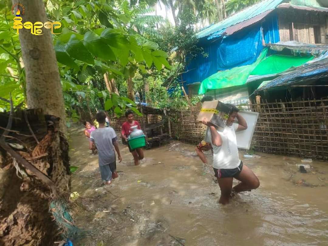 မုန်တိုင်းအရှိန်ကြောင့် ရေတက်လာပြီးနေအိမ်များပါပျက်စီးမှုရှိလာ၍ ပေါက်တော ဆင်တက်မော်ကျေးရွာသားများကို ဘေးလွှတ်ရာသို့ ပြောင်းရွှေ့