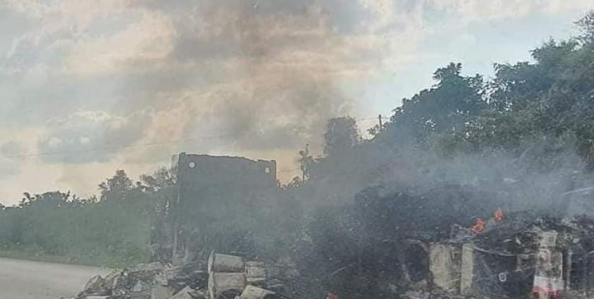 ကော့ကရိတ်-တတန်ကူးလမ်းဘက်မှ ရောက်ရှိလာသည့် စစ်ကောင်စီတပ်များနှင့် ကော့ကရိတ်-မြ၀တီ အာရှလမ်းမ ကော့နွဲရွာအလွန် လမ်းကွေ့နေရာတွင် အောက်တိုဘာ၂၅ရက်၊ မွန်းလွှဲ ၂နာရီခန့်က မြ၀တီမြို့ဘက်မှ ကော့ကရိတ် ဘက်သို့ ဆင်းလာသည့် ကုန်တွဲကား ၂စီး မီးလောင်နေကြောင်း ကိုယ်တိုင်မြင်တွေ့ခံသူ ဒေသခံယာဉ်မောင်းများက ပြောသည်။