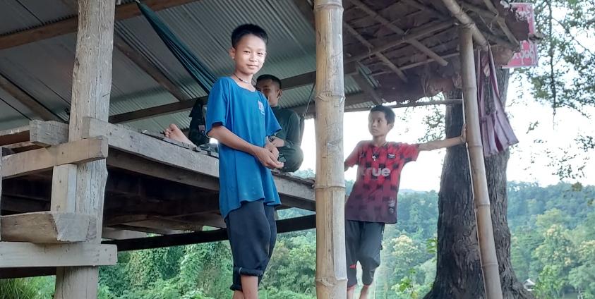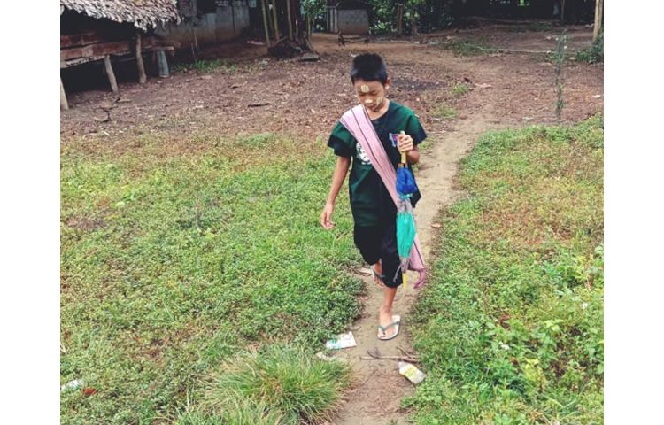 "ရွာမှာက ဗမာ(အစိုးရ)ကျောင်းလေ။ ၂တန်းကို ဟိုး…ရွာမှာတက်ခဲ့တာ။ မနှစ်(၂၀၂၁)ကတော့ ကျောင်းဖွင့်တယ်။ ရွာကျောင်းကဖွင့်ပေမယ့် တက်လိုက် ပိတ်လိုက်နဲ့ ရောဂါ(ကိုဗစ်)ဖြစ်တယ်ဆိုတော့ ငါ့အမိုးက မပေးတက်တော့ဘူး။ အိမ်မှာနေလည်း အလုပ်မရှိတော့ ငါ ကျွဲသွားကျောင်းတယ်။ အဲဒီတနှစ် မနားလိုက်ရင် အခုဆို ငါ လေးတန်းတက်ရပြီ လေ။"လို့ သူက ပြောပါတယ်။