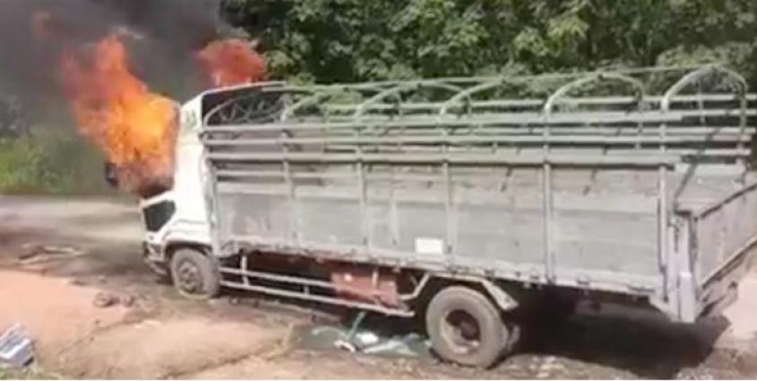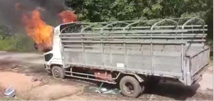 ကားမီးရှို့မှုကို ရေးဘီလူးအဖွဲ့က လုပ်ဆောင်ခြင်းဖြစ်ပြီး ထိုကုန်တင်ကားပိုင်ရှင်ကုမ္မဏီမှာ စစ်တပ်နှင့် စီးပွားရေးအကျိုးတူပူးပေါင်းနေသောကြောင့် အရေးယူခြင်းဖြစ်ကြောင်း ထုတ်ပြန်ထားသည်။