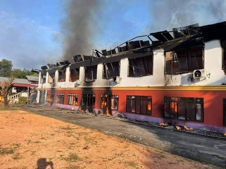 သုဝဏ္ဏဝတီမြို့က နှစ်တစ်ရာကျော်သက်တမ်းရှိ သိမ်ဆိပ်ဘုန်းကြီးကျောင်းမီးလောင်ကျွမ်းခြင်း