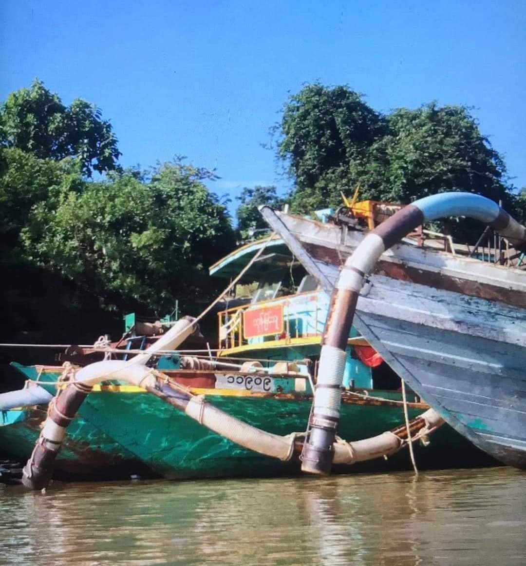 ဓာတ်ပုံ- ဧရာဝတီမြစ်ကမ်းတစ်လျှောက်တွင် မြင်တွေ့ရသည့် ရွှေဖောင်များ