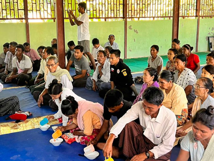 “အနီးအနား ကျေးရွာတွေကနေပင့်ပြီး သံဃာ ၂၆ ပါးနဲ့ ရွာခံတွေရယ်၊ ပြီးတော့ ပရဟိတအဖွဲ့အစည်းတွေနဲ့ အခြားဧည့်သည်တွေပါ လာရောက်ကြတယ်”ဟု အဆိုပါဒေသခံက ပြောသည်။