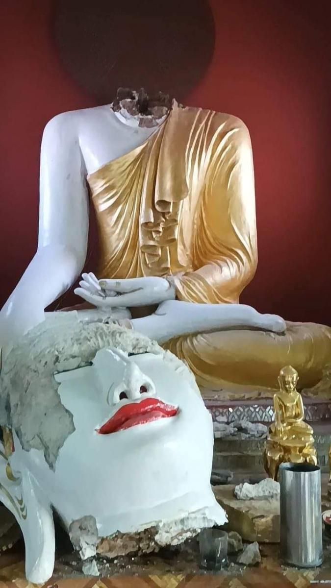 မင်းကွန်းပုထိုးတော်ကြီးရဲ့အထင်ကရတစ်ခုဖြစ်တဲ့ မင်းကွန်းခြင်္သေ့ကြီးရုပ်ထုရဲ့ လက်မောင်းရင်းမှာ ယခင်အက်ကြောင်းရှိနေတဲ့ နေရာကနေ တစ်ခြမ်းပဲ့ကျခဲ့တယ်လို့လည်း ကနဦး သတင်းတွေအရ သိရပါတယ်။