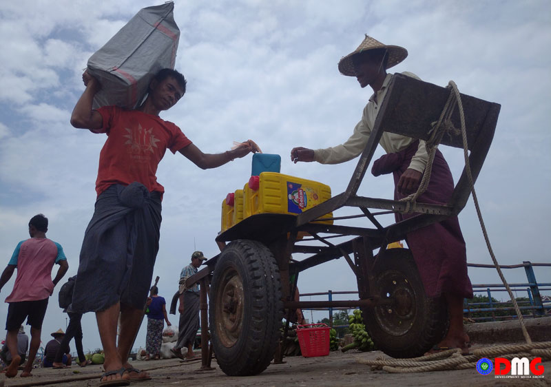 ပုံစာ - စစ်တွေမြို့တွင်း အခြေခံအလုပ်သမားများကို တွေ့ရစဉ်။
