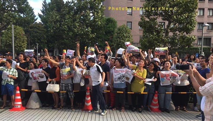 ရခိုင်ပြည်နယ်တွင် ဖြစ်ပွားနေသည့် အကြမ်းဖက် တိုက်ခိုက်မှုများနှင့် ပတ်သက်၍ ဂျပန်ရောက် မြန်မာနိုင်ငံ တိုင်းရင်းသားများဖြစ်သည့် ဗမာ၊ ရခိုင်၊ မွန်၊ ရှမ်း၊ ချင်း၊ ပလောင်နှင့် ပအို့ဝ်အပါအဝင် မြန်မာနိုင်ငံသားနှင့် ဂျပန်လူမျိုး ၅၀၀ ခန့်က စက်တင်ဘာလ ၁၃ ရက်နေ့ နေ့လယ် ၃ နာရီတွင် UN University (ကုလသမဂ္ဂ တက္ကသိုလ်) ရှေ့တွင် ဆန္ဒပြပွဲတစ်ခုကို ပြုလုပ်ခဲ့သည်ဟု သိရသည်။