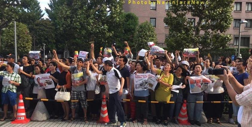 ရခိုင်အရေးနှင့် ပတ်သက်၍ ဂျပန်ရောက်မြန်မာတိုင်းရင်းသား ၅၀၀ ခန့် ကုလတက္ကသိုလ်ရှေ့တွင် ဆန္ဒပြ