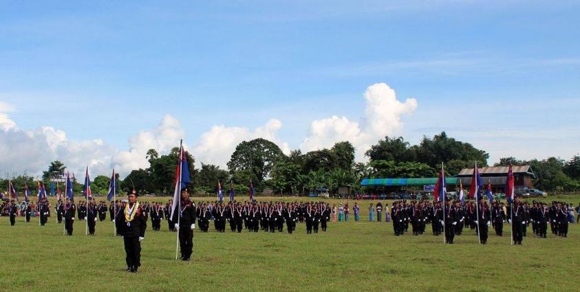 ရာသီဥတုသာယာသည့် ထိုနေ့ ဘော့ဒိုင်းရှိ အခမ်းအနားနေရာသို့ မိုးစင်စင်လင်းချိန် ကျနော်တို့ ရောက်လျှင်ရောက်ချင်း အနီး ဝန်းကျင်တစ်ဝိုက်အား ကြည့်လိုက်သည့်အခါ အစားအသောက် ချက်ပြုတ်နေကြသူများ၊ အခမ်းအနားတက်ရန် ပြင်ဆင်နေ သည့် ကရင်ရဲတပ်ဖွဲ့ဝင်များ၊ ကရင်ရိုးရာဝတ်စုံကို အရောင်အသွေးစုံစွာ ၀တ်ဆင်ရင်း အခမ်းအနားသို့ တဖွဲဖွဲ လာရောက်နေကြ သူ ဧည့်ပရိဿတ်များကိုလည်း မြင်တွေ့နေရသည်။ လုံခြံုရေးတာဝန်ယူများကလည်း ပတ်ဝန်းကျင်တစ်ခုလုံးအား မျက်ခြေမ ပြတ် အကဲခတ်လျှက်ရှိသည်။ ဘော့ဒိုင်းတွင် တခဏ သွားလာကြည့်ရှုပြီး အခမ်းအနားလာသူ မိတ်ဟောင်းဆွေဟောင်းများကို နှုတ်ဆက်ပြောဆိုနေချိန် နံနက် ၈နာရီတွင် အခမ်းအနားမှူးက ပထမဆုံးအကြိမ် ကရင်အမျိုးသားရဲတပ်ဖွဲ့နေ့အား ဂုဏ်ပြု ကြောင်း စတင်ကြေညာလိုက်သည်။