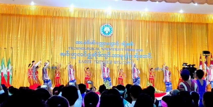 တက္ကသိုလ် စာယဉ်များကို မွန်ပြည်နယ်အစိုးရ ကရင်ဝတ်စုံနှင့် တူရိယာပစ္စည်းများပေးအပ်
