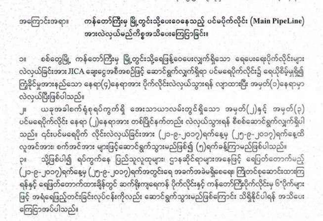 စည်ပင်ကြေငြာ (လေးဝတီထွန်းစောခိုင်/Facebook)