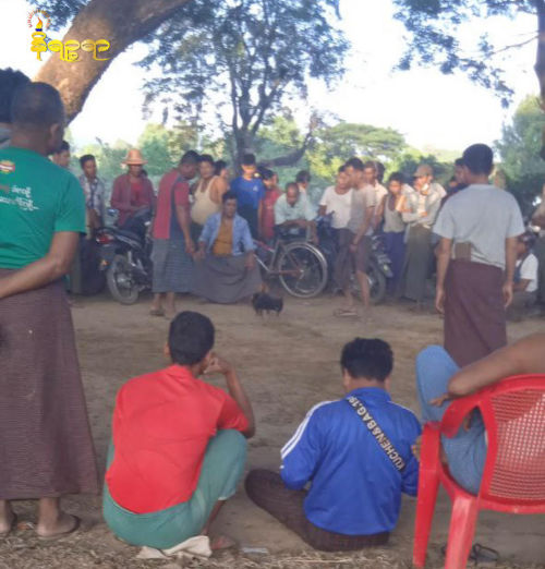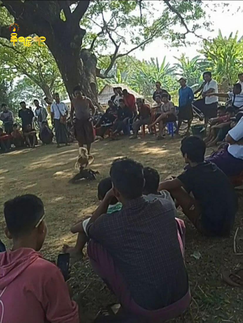 တောင်ကုတ်မြို့နယ် ကျေးရွာတစ်ခုတွင် စစ်ကောင်စီတာဝန်ရှိသူများက လောင်းကြေးယူပြီး  ပြုလုပ်နေသည့်ကြက်ဝိုင်း